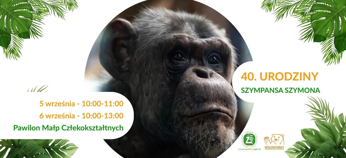 🥳 W ten weekend 5 i 6 września świętujemy 40. urodziny szympansa Szymona w Warszawskim ZOO! 🎉🐒 Przygotujcie się na dyskotekową atmosferę i mnóstwo szympansich atrakcji w ramach specjalnej urodzinowej imprezy Szymona oraz Soboty z Wolontariuszem! 😎