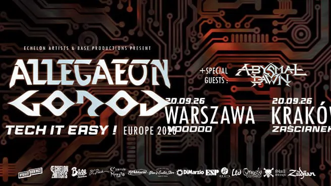 Trasa “Tech It Easy!” przejedzie we wrześniu przez Europę i zatrzyma się na dwóch przystankach w Polsce! Finezyjne i dopracowane deathmetalowe walce w Warszawie i Krakowie zaserwują Wam Allegaeon, Gorod oraz Abysmal Dawn!