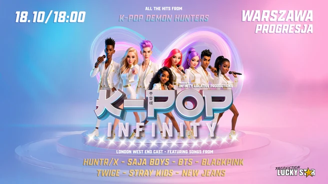 Określany jako kolejny etap ewolucji występów K-Pop na żywo, K-Pop Infinity to pełne energii show inspirowane globalnym fenomenem Netflixa K-Pop Demon Hunters, a także największymi hitami BTS, Blackpink, Twice, Katseye,… Po więcej informacji zajrzyj na eBilet.pl