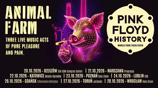 Przygotuj się na muzyczną ucztę. PINK FLOYD HISTORY ,,Animal Farm Three Live Music Acts Of Pure Pleasure And Pain – World Tour 2026-2028”