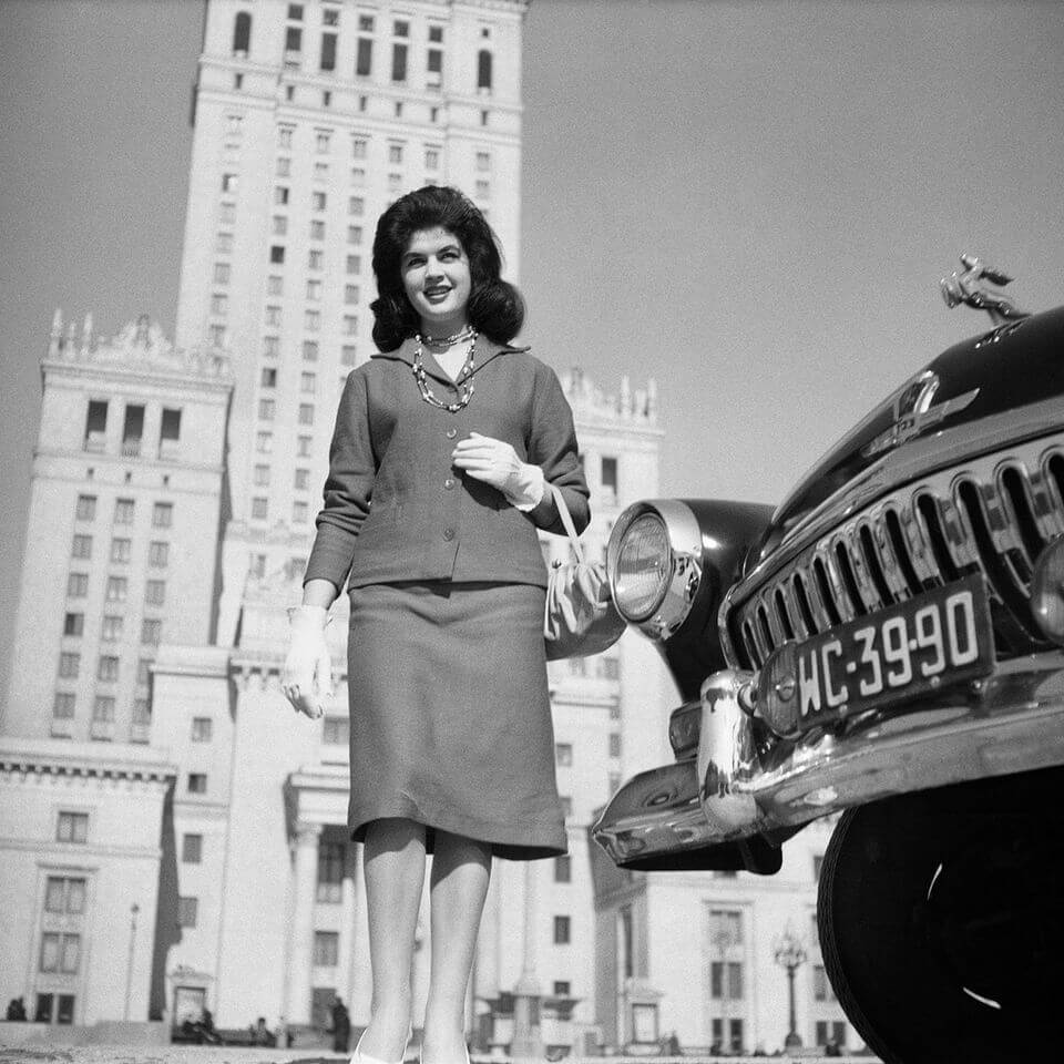 Sesja fotograficzna dla tygodnika „Przyjaźń” z fotomodelką Jadwigą Smoczyńską (wicemiss Warszawy w 1958 roku), w tle